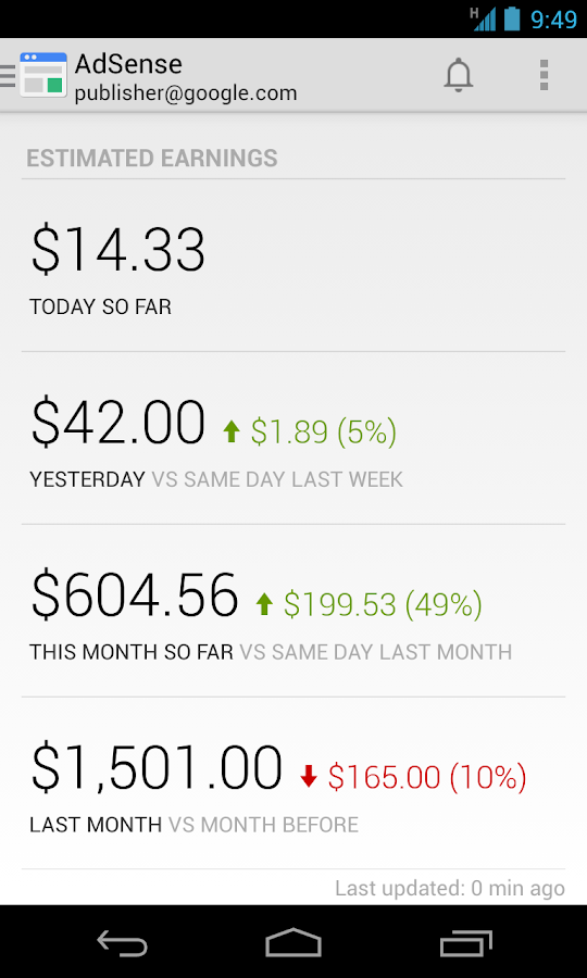 Apartir del día de hoy ya se puede descargar la app de Google AdSense desde Google Play, con esta app tendrás acceso fácil a información importante de tu cuenta de AdSense. Podrás acceder a reportes en donde quiera que te encuentres directamente desde tu Android.